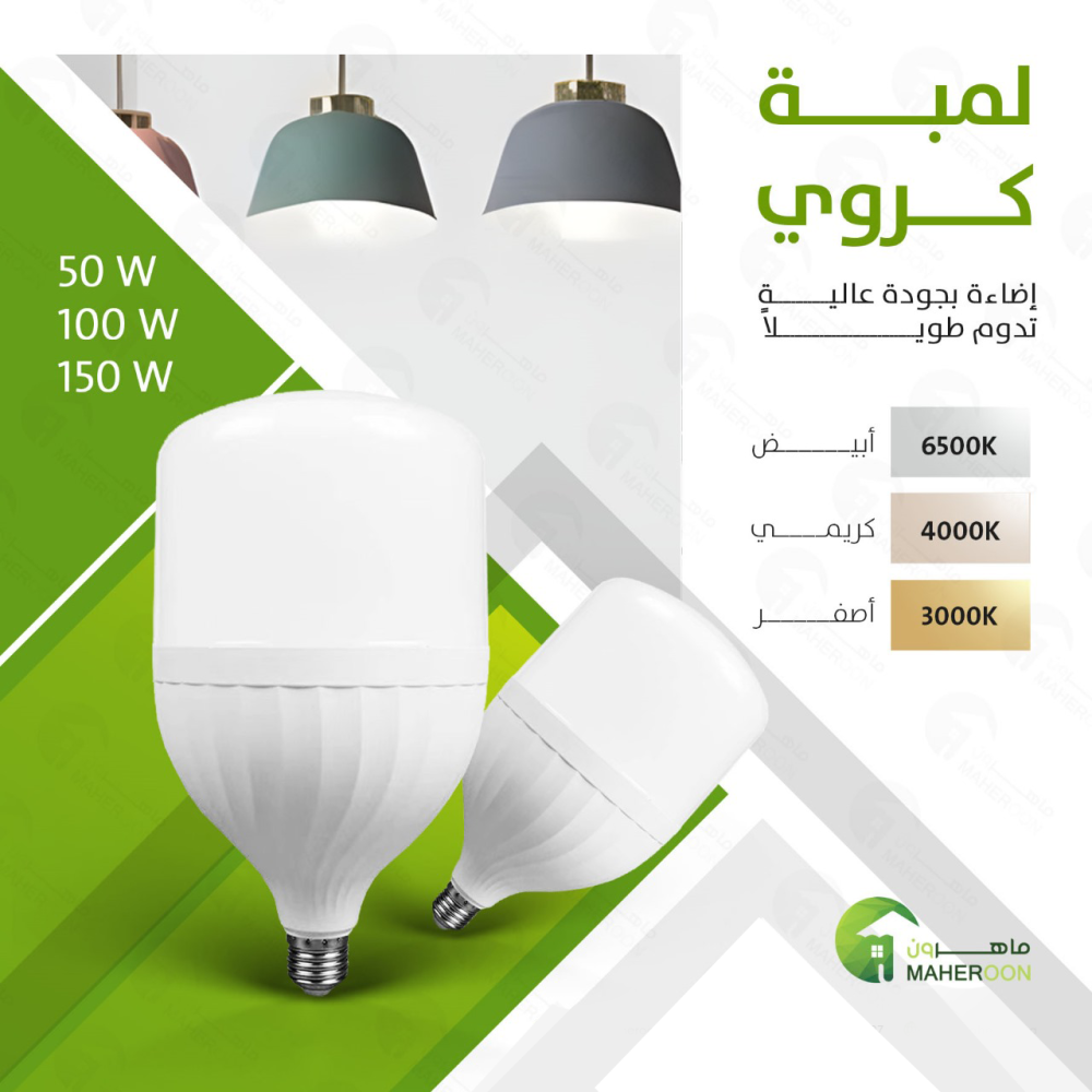 لمبة كروي 150 واط يتميز بتصميمه العصري والأنيق، مما يجعله خيارًا مثاليًا لمختلف المساحات. يتميز بإضاءة مريحة وعالية الكفاءة، مما يساعد في خلق أجواء دافئة ومريحة. يتكون عادةً من مواد مثل الألمنيوم والبلاستيك، مما يضمن له المتانة والجودة.